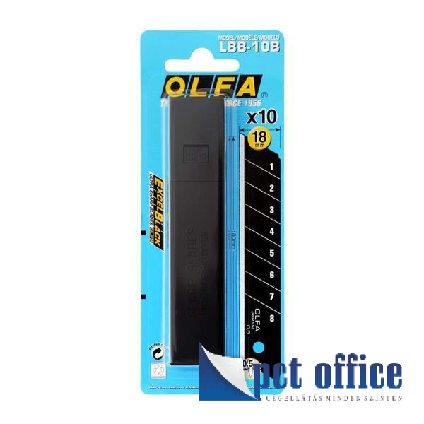 OLFA LBB-10 - 18mm-es keskenyebb élszögű edzett tördelhető penge. A következő standard késekhez alkalmazható: SL-1, BN-L, BN-AL, ML, L-1/green, L-2, XL-2, L-5, L5-AL, L-7, L7-AL, OL, NOL-1, NL-AL, PL-1, CL és CMP-2.