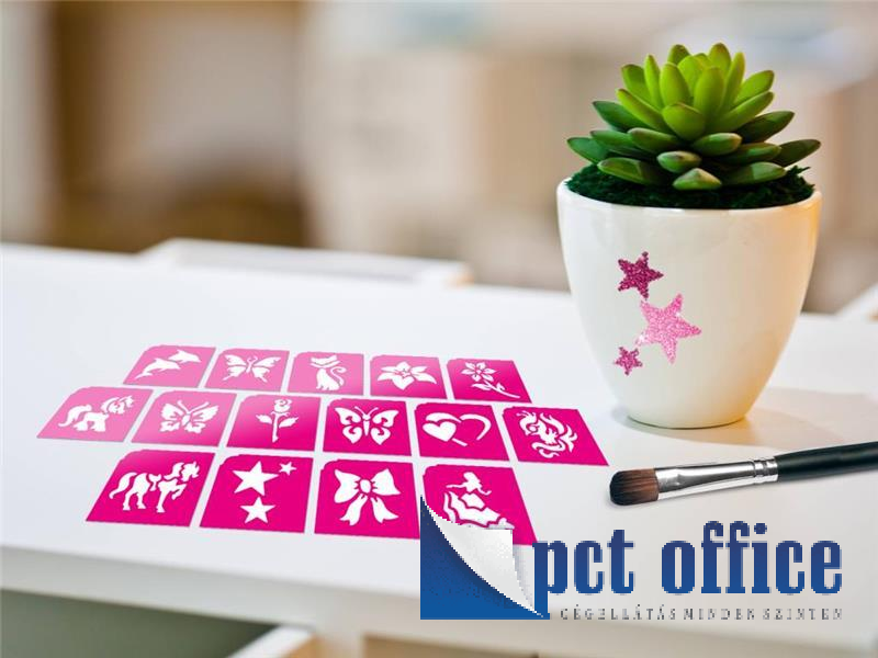 A szett tele van virágos, pillangós sablonokkal, melyek kifejezetten gyermeked pici karjára lettek tervezve. Így akár saját magának is könnyedén elkészítheti az apró szikrázó tetkóit, de közösen szórakozva még jobb móka lehet számára!