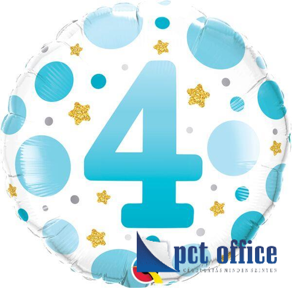 Lufi Fóliás 18 inch-es 4-es szám, Szülinap, Blue Dots, Pöttyös Kék