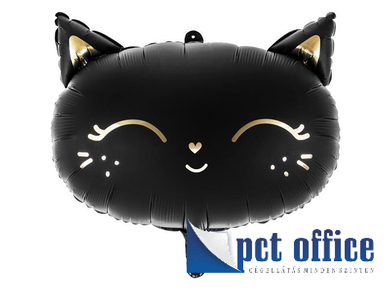 Fólia lufi, Cica fej, fekete, csomagolt. 48*36cm.