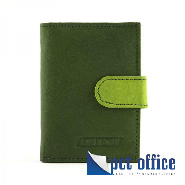Puha nappa bőrből készült kártyatartó, külső patentos átkapcsolóval, S. Belmonte felirattal. Külső patentos átkapcsolóval