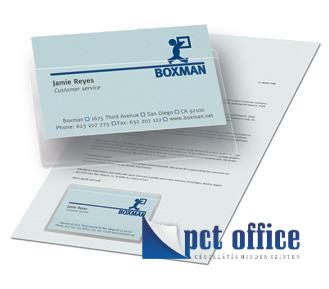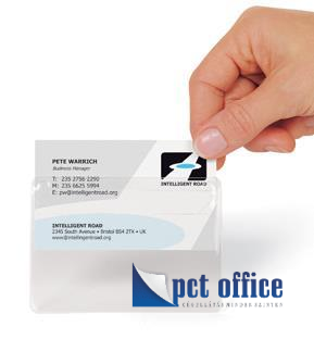 Praktikus, átlátszó, öntapadó névjegykártyatartó tok, prezentációs anyagokhoz, katalógusokhoz.