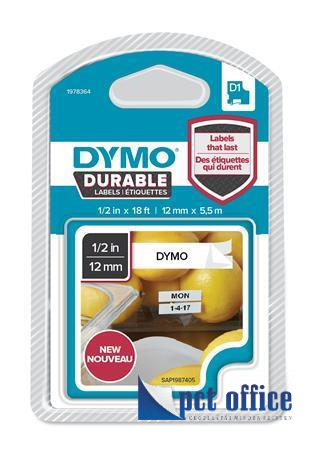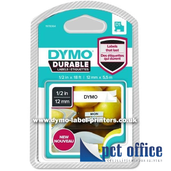 Feliratozógép szalag, 12 mm x 5,5 m, tartós, DYMO D1, fehér-fekete