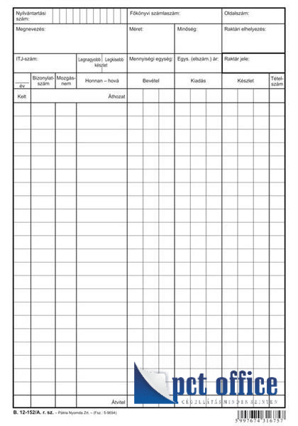 B.12-152 Raktári nyilvántartó lap A4 Pátria