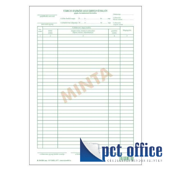 Tárgyi eszköz leltárfelvételi íve: (gépek, berendezések felvételére), A/4, álló.