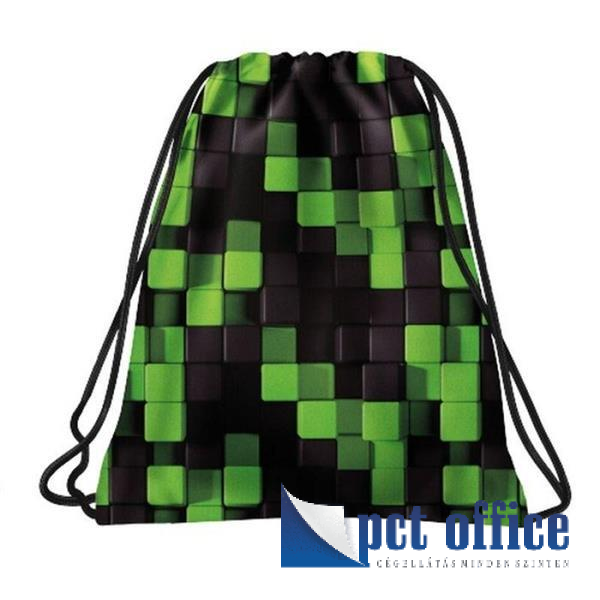 Minecraft mintás tornazsák, 41x35cm, Back Up 2024, A52, zöld-fekete. Dupla zsínóros, hordhatod a kezedben, a válladon vagy a hátadon is. Méret: 41x35cm. Súly: 45g