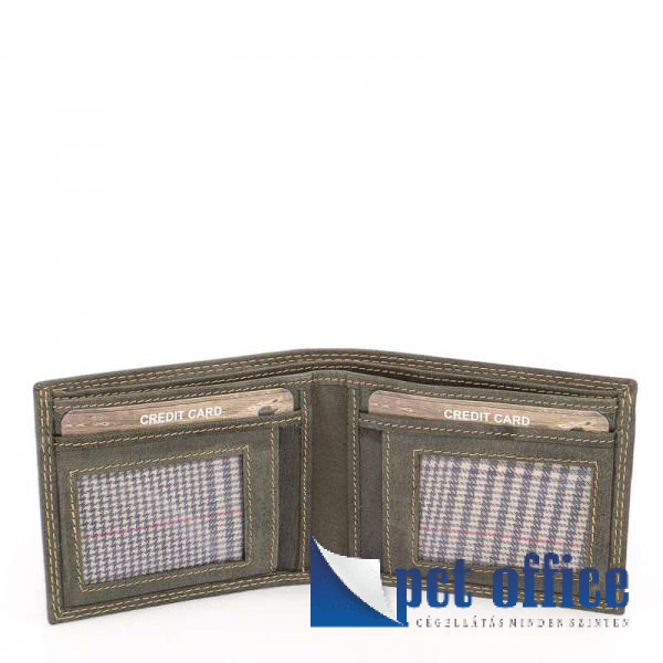 LA SCALA márkajelzésű, egyedileg tervezett logóval díszített férfi pénztárca valódi, ún. „vadász” marhabőrből fekete színben. Fedelén a dupla tűzés sportos jelleget kölcsönöz a terméknek. A papírpénztartókból az egyik cipzárral záródik. A pénztárcán belül szimmetrikusan helyezkednek el a kártyatartók és az irattartók.