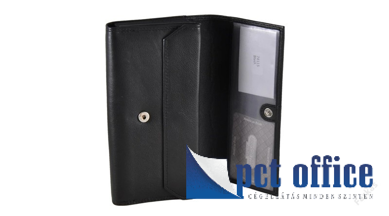 Nagy méretű, kifejezetten pincérek számára javasolt pénztárca kiváló minőségű bőrből. Nyomott "American Pride" felirat és elegáns dupla varrás díszíti. Saját márkánk terméke. Fedele patenttal nyitható. Különlegessége, hogy egy patentos és egy cipzáras aprópénztartó is található benne. Belül egy nagy ablakos kártya ill. igazolványtartóval és egy további igazolványtartóval rendelkezik. Papírpénztartója minden igényt kiszolgál; összesen 7 rekeszből áll. A brifkó hátulján egy további igazolványtartó zseb el van helyezve.