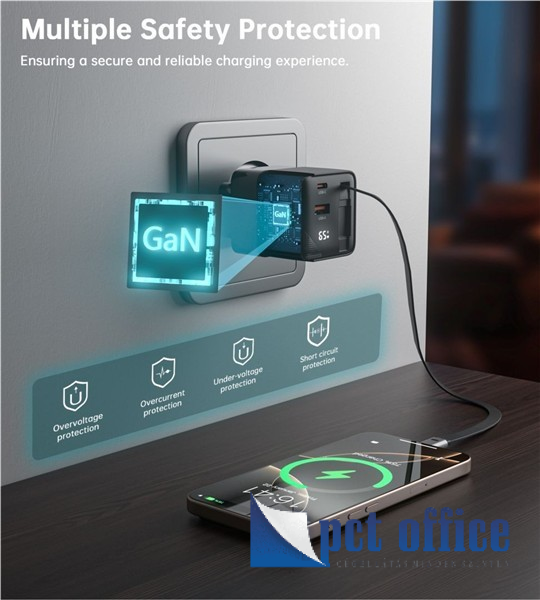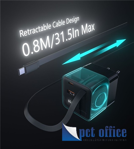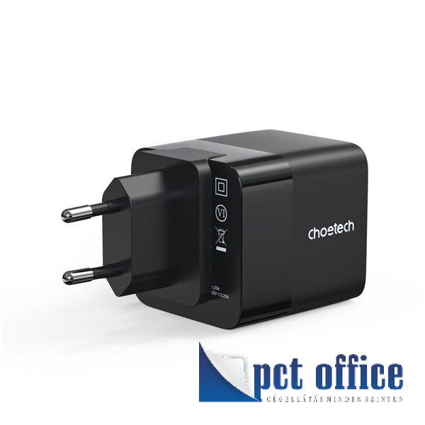 USB hálózati adapter Choetech PD6091 GaN Type-C PD65W gyorstöltő, fekete