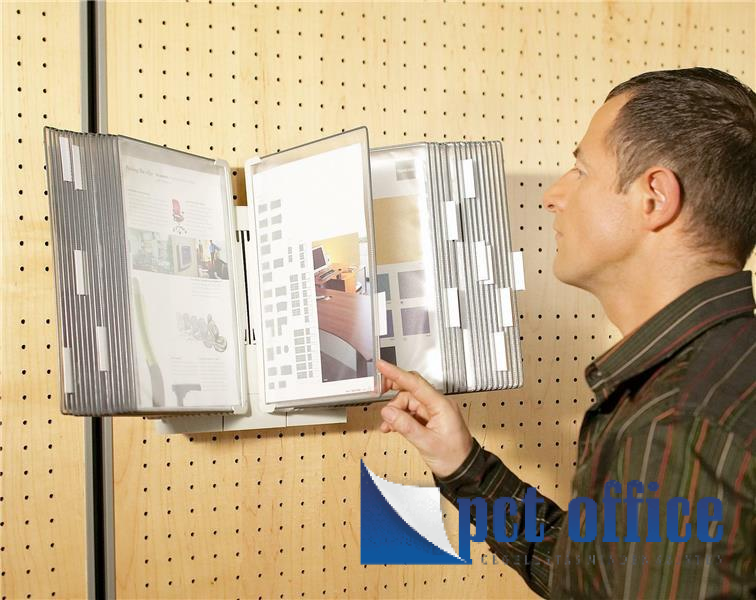 Formatervezése ideális dőlésszöget biztosít a dokumentumok olvasásához, és a táblákat nyitott állapotban tartja. A bemutatótábla acélhuzal kerettel, műanyag bevonattal, és műanyag forgócsappal, míg a táblák tükröződésmentes, újrahasznosítható polipropilénből készülnek, melyek külön is rendelhetők. További t-design fali tartóval végtelenül bővíthető. Összeszerelhető, szétszedhető. Kitűnő választás irodába, recepcióba, váróterembe stb.