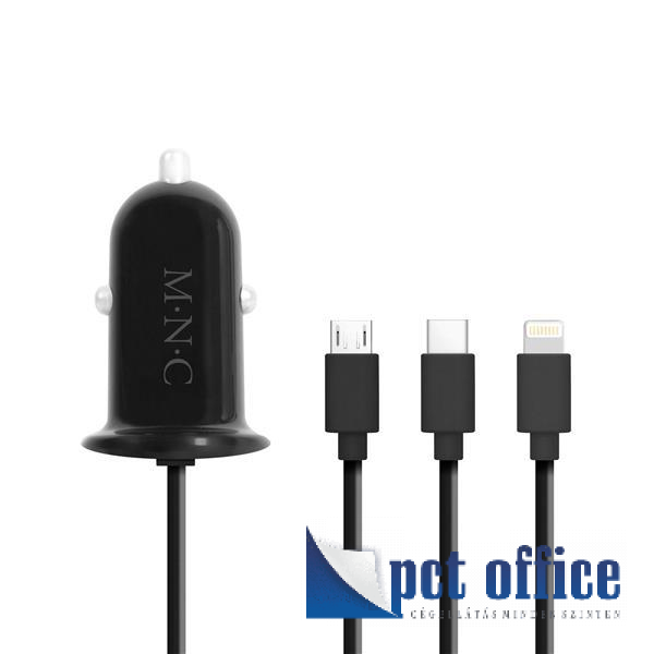 Életünk jelentős részét töltjük autóban, így nélkülözhetetlen mobil eszközeink töltése egy-egy hosszabb út során. Ez az adapter 3 különböző töltőfejjel is rendelkezik, így garantáltan minden eszköz töltése lehetséges, legyen az Lightning, MicroUSB vagy Type-C csatlakozóval szerelt. A szivargyújtós egységen lévő USB csatlakozó lehetővé teszi például fedélzeti kamerák, powerbankok energiaellátását. A kábel, kényelmes, gubancolódásmentes használatáról spirál rész gondoskodik.