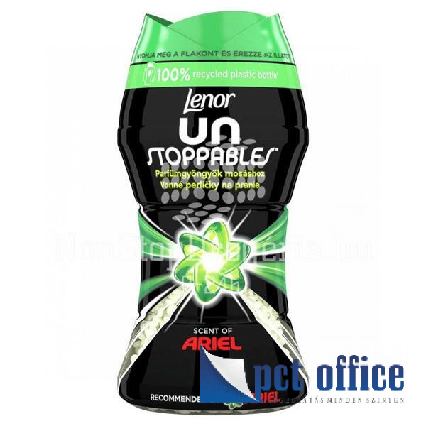A különböző illatokban kapható Lenor Unstoppables parfümgyöngyök minden mosás alkalmával kirobbanó frissességgel töltik meg a ruhákat. A Lenor Unstoppables friss illata minden mosás után akár 12 héten át kirobbanó frissességet kölcsönöz a ruháknak (tárolt ruhák esetén), így mindig érezheti rajtuk kedvenc illatát. Akik a fehér virágok tradicionális illatának egy modern változatára vágynak, azoknak illatszakértőink az Ariel illatú Unstoppables parfümgyöngyöket ajánlják. A frézia, az ibolya és a rózsa különleges illatkompozíciója öleli körbe az alapillatot, amelyet tradicionálisan tiszta, erőteljesen zöldes karakterű, valamint aldehides, kirobbanó frissességű illatjegyek alkotnak. Mindez a meleg, nyugtató fás ámbra jegyeire épül, ami kiegyensúlyozottá teszi a pazar illatélményt.