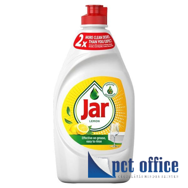 A Jar Lemon minden cseppje a felé támasztott elvárásoknak megfelelő, hatékony és hosszan tartó tisztítóerővel dolgozik. Koncentrált formulájának köszönhetően azonnal eltávolítja a zsíros szennyeződéseket, és ragyogóan tisztává varázsolja az edényeket. Hatékonyan elbánik az ételekből származó zsíros szennyeződések 100%-ával. A Jar Original mosogatószer-koncentrátum olyan intenzív, hogy egyetlen cseppje is elegendő: előáztatás nélkül eltávolítja a zsíros szennyeződéseket.