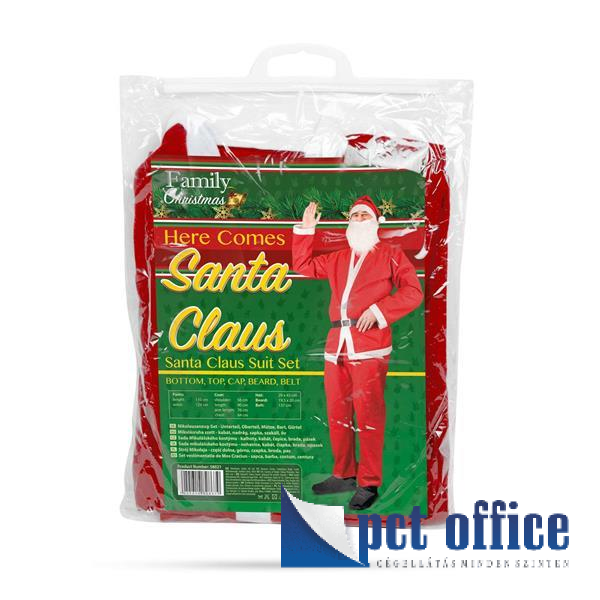 Teljes mikulás jelmez, alsó, felső ruházattal, szakállal, sapkával és övvel. Legyen Ön az igazi télapó!